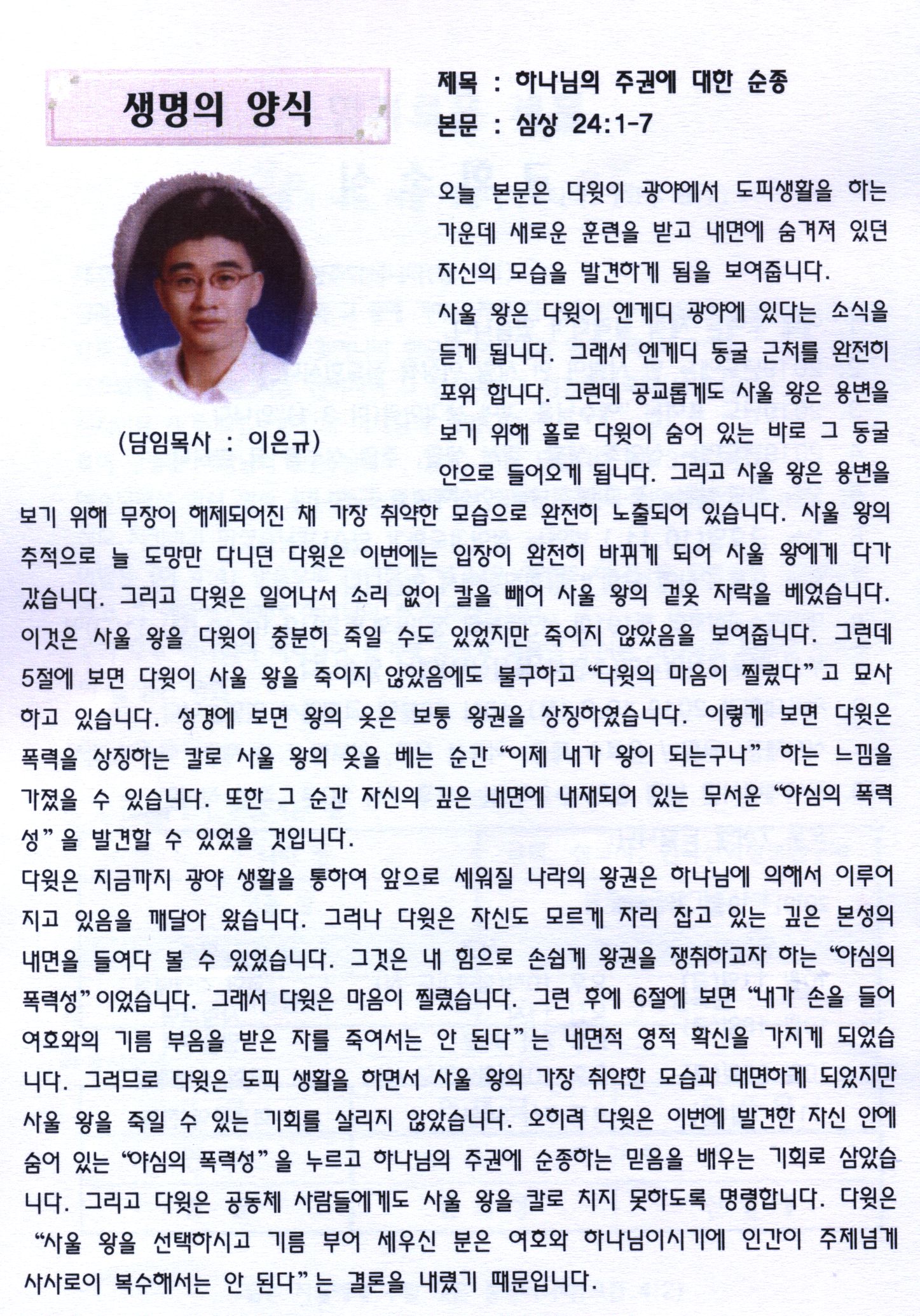 - [성경본문] 사무엘상24:1-7 개역개정