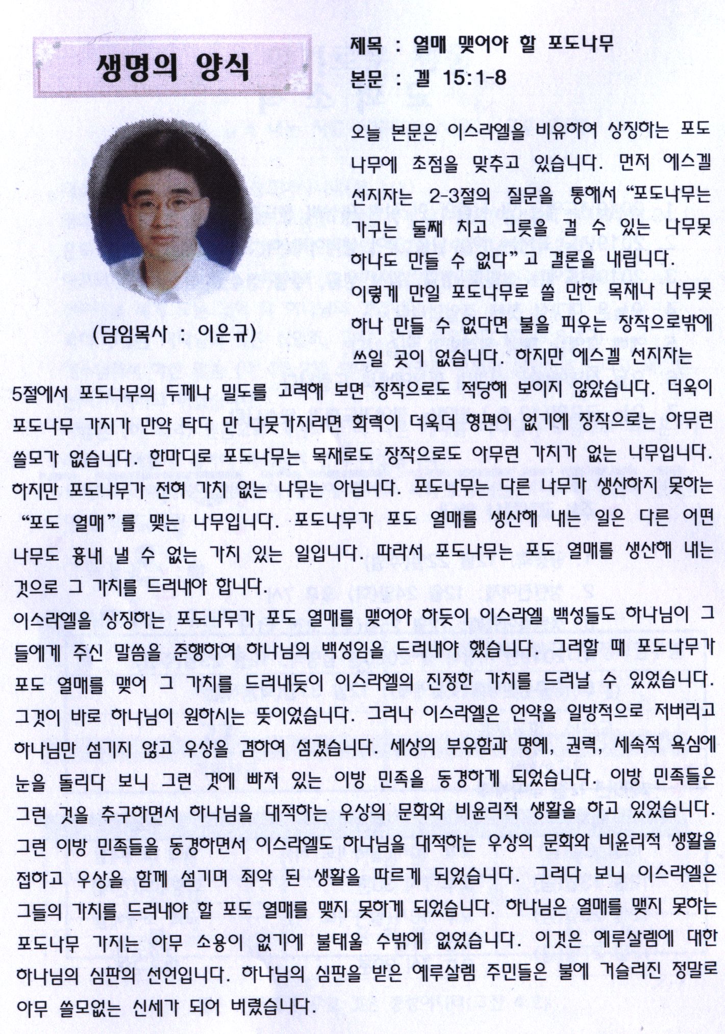 열매 맺어야 할 포도나무