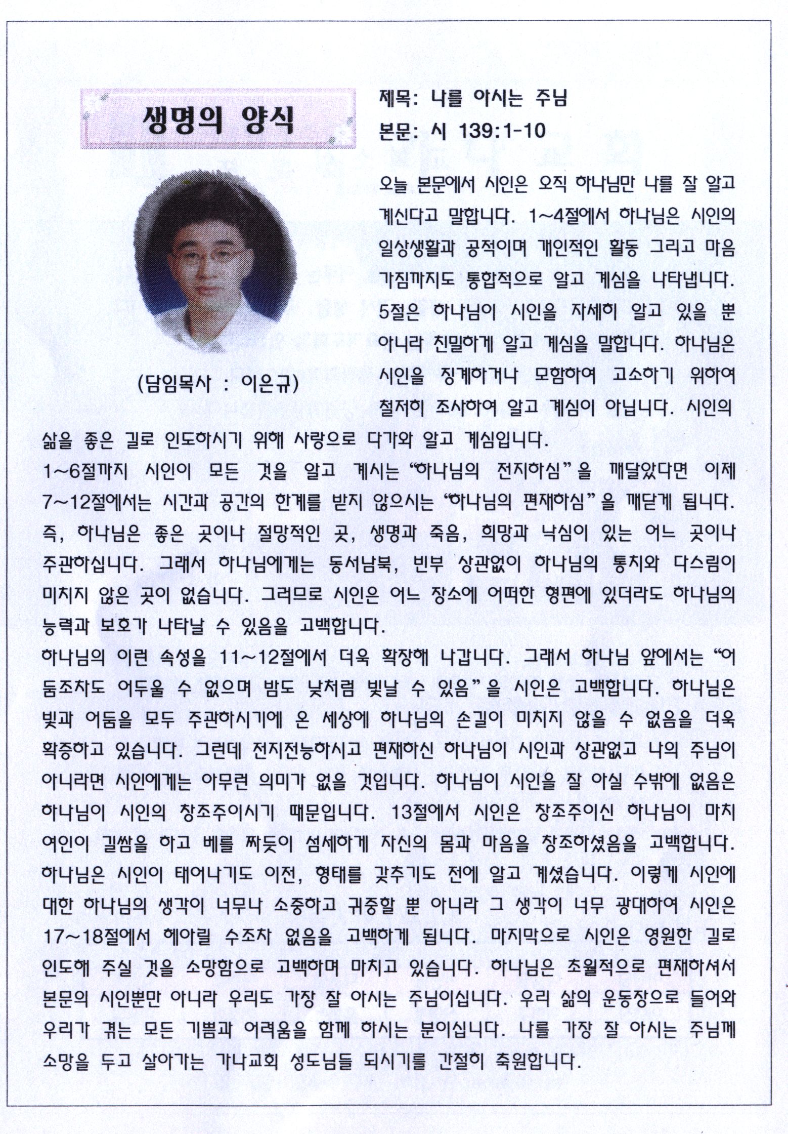 나를 아시는 주님