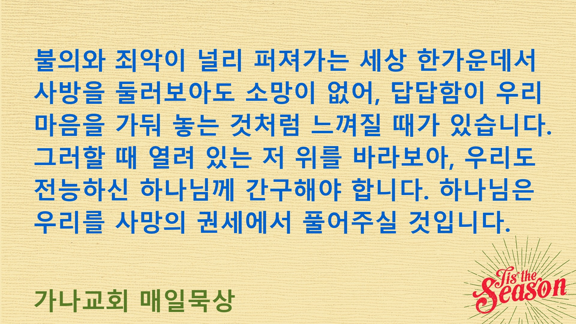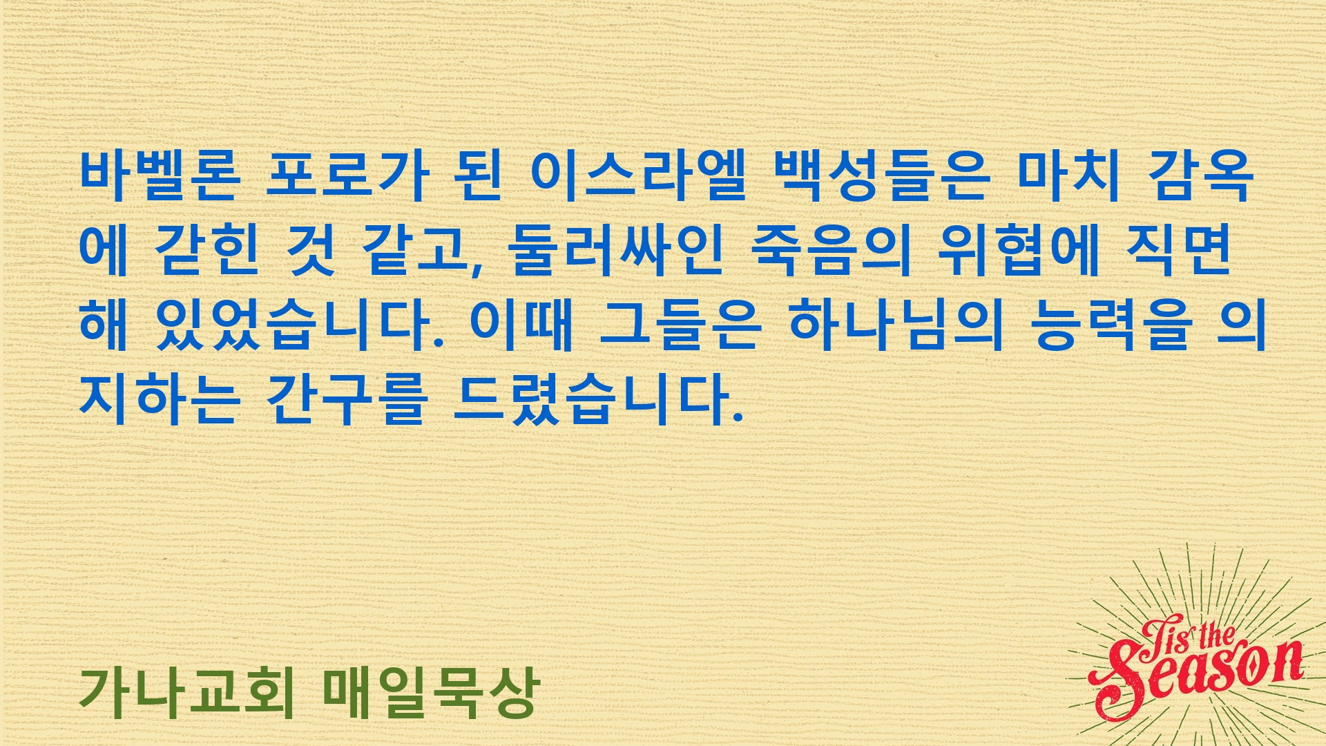 11. 갇힌 자의 탄식을 주의 앞에 이르게 하시며 죽이기로 정해진 자도 주의 크신 능력을 따라 보존하소서