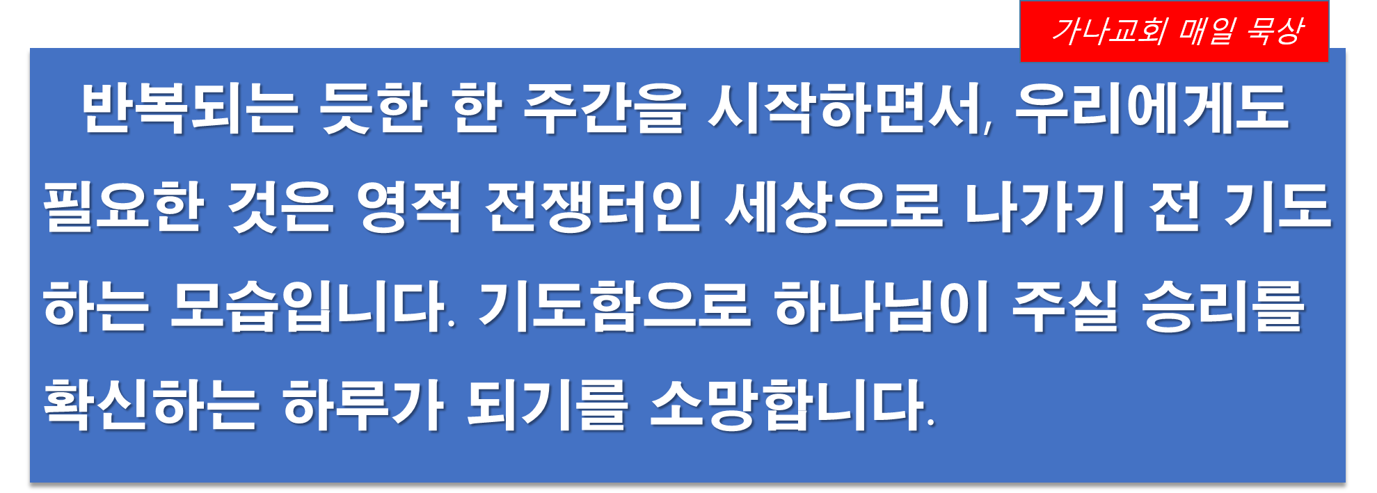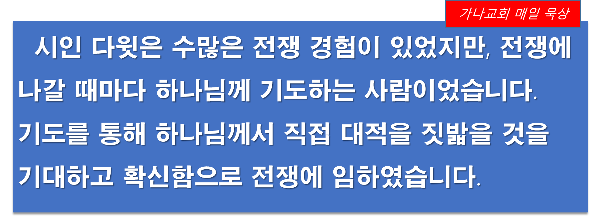 | 이전글 | 전도서 12장 11절 | 운영자 | 2020.09.15 | 0 | 283 |