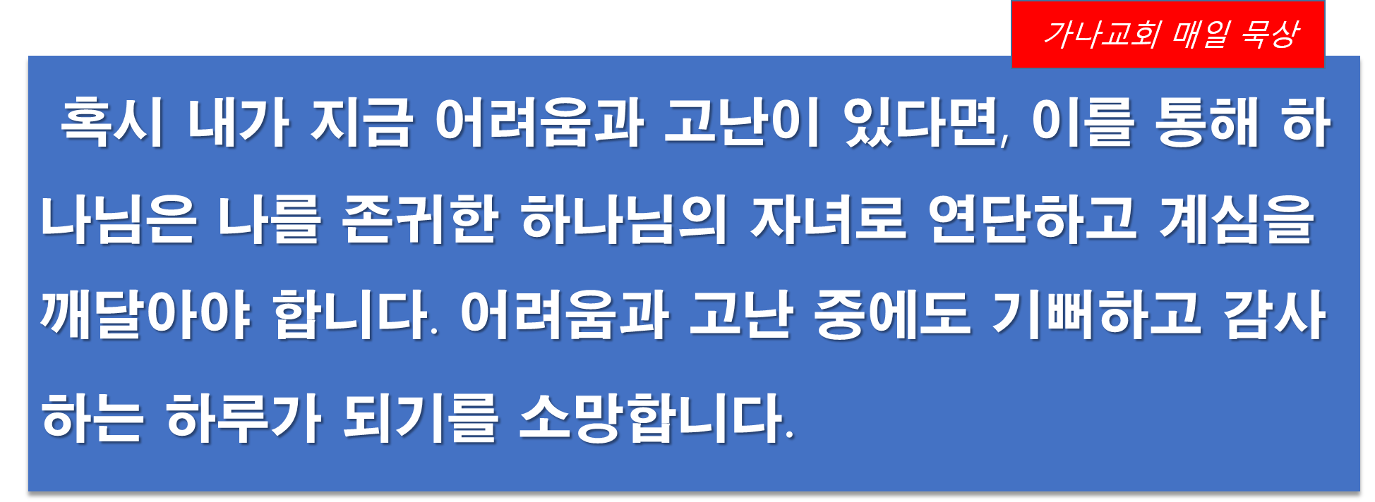 | 다음글 | 시편 81편 10절 | 운영자 | 2020.10.28 | 0 | 244 |