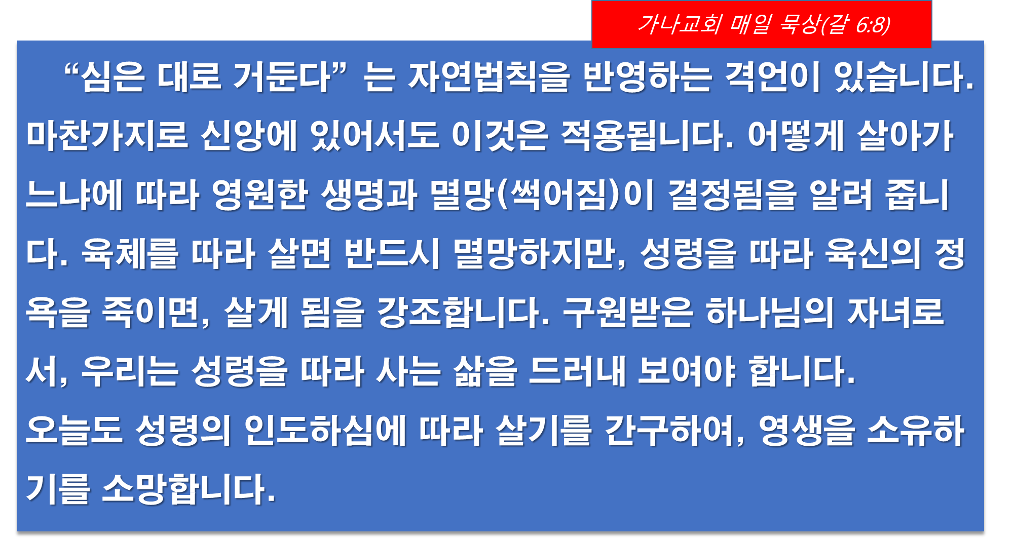 | 이전글 | 시편 48편 14절 | 운영자 | 2020.12.23 | 0 | 160 |