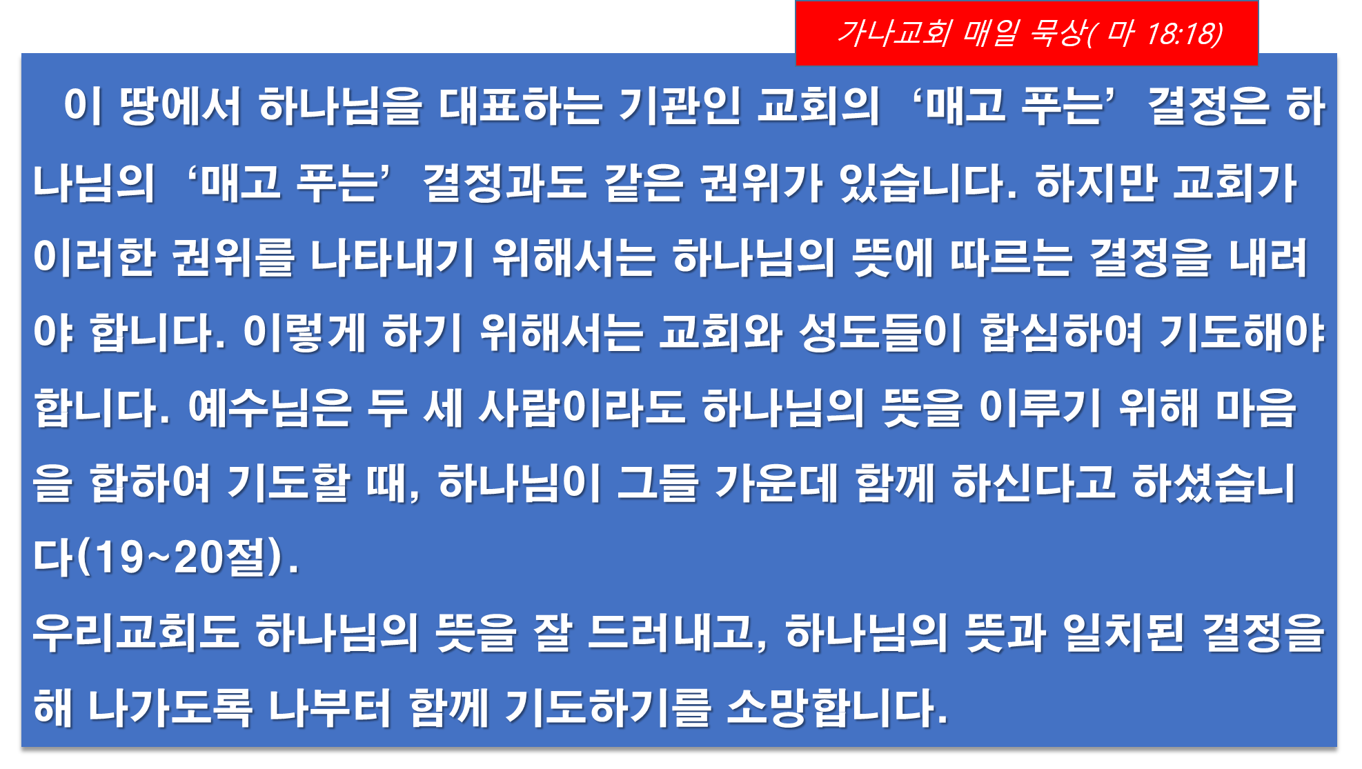 | 이전글 | 마태복음 25장 40절 | 운영자 | 2021.01.30 | 0 | 188 |