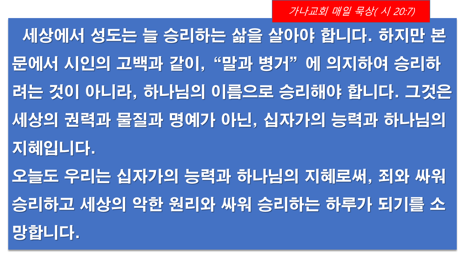 | 다음글 | 야고보서 5장 13절 | 운영자 | 2021.02.03 | 0 | 238 |
